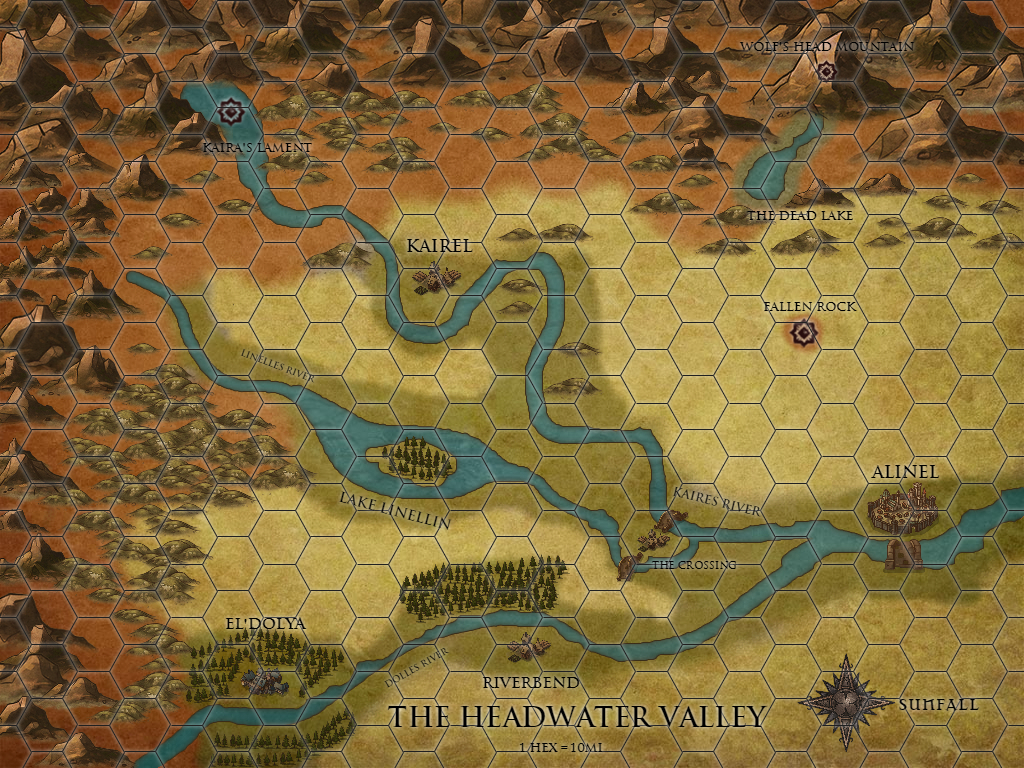 Before I dig too into it, though, I’d like to highlight a cool tool I found online – Inkarnate.com. It’s an in-browser program that lets you build nifty maps. It’s easy to use, and has a free version and a yearly subscription version. You need the paid version to be allowed to use the maps for commercial purposes (in addition to getting more tools), but the free version already feels super flexible. I made the above map of the Headwater Valley – a small corner of Akhelas I used when planning out a Pathfinder adventure a few weeks ago – in about an hour.