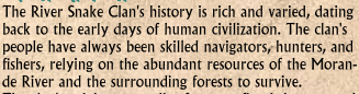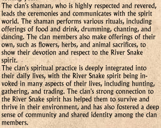 I strongly disliked reading through the Elkoi Clans section. I found it generic, repetitive, and dull. Each clan’s history, campsite description, and spirit cult was extremely similar, and lacked almost any interesting details. In particular, the inclusion of describing what magic each clan’s totem is known for providing to its Balazarings would give the gamemaster a way to distinguish each group. Plus, learning new magic is a good game reason to engage in the roleplay of clan interaction.